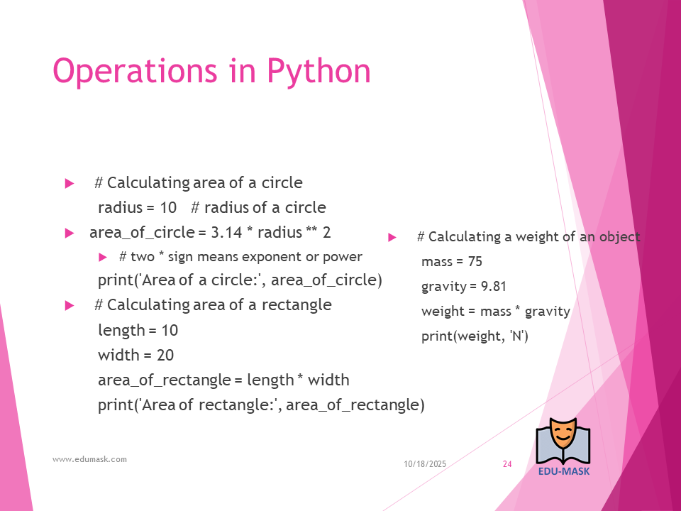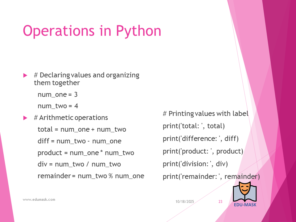 - Arithmetic Operators