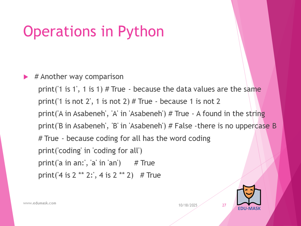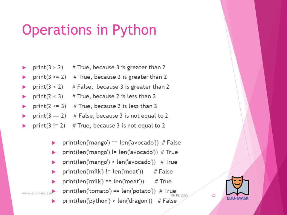 - Comparison Operators