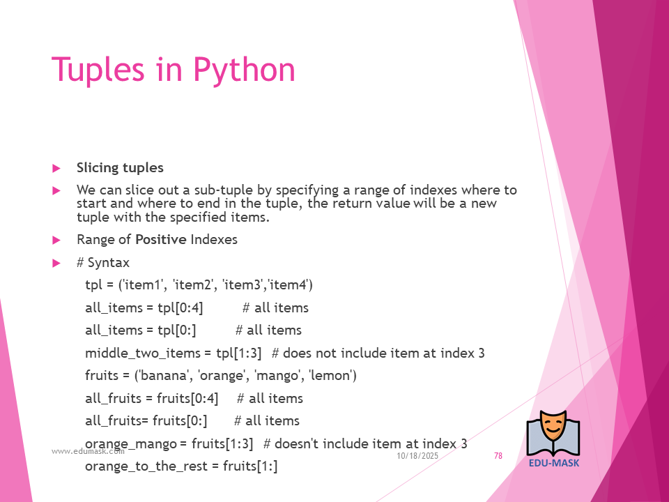- Slicing Items from a List